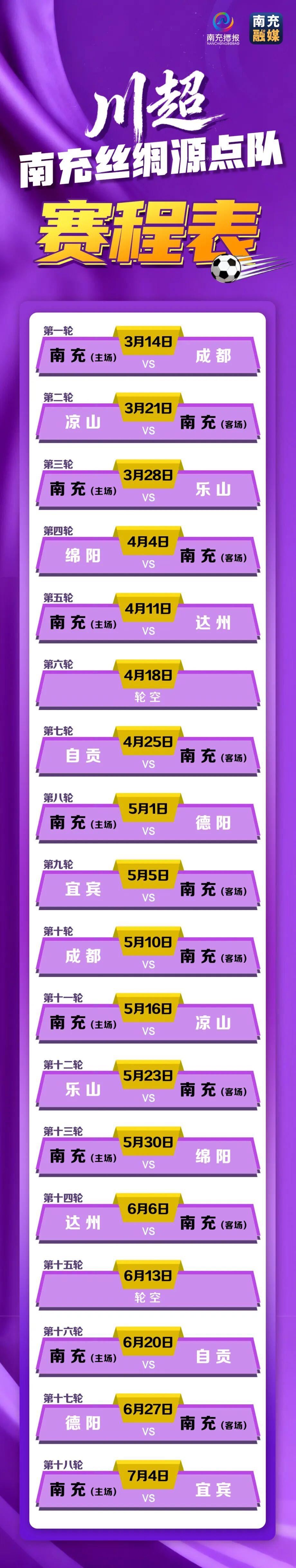 3月14日,2025/2026四川银行四川省城市足球联赛总决赛阶段将正式启动,赛事延续至7月结束。决赛季将采用主客场双循环赛制,9支劲旅,将在总决赛阶段通过18轮共计72场比赛决出最终名次。